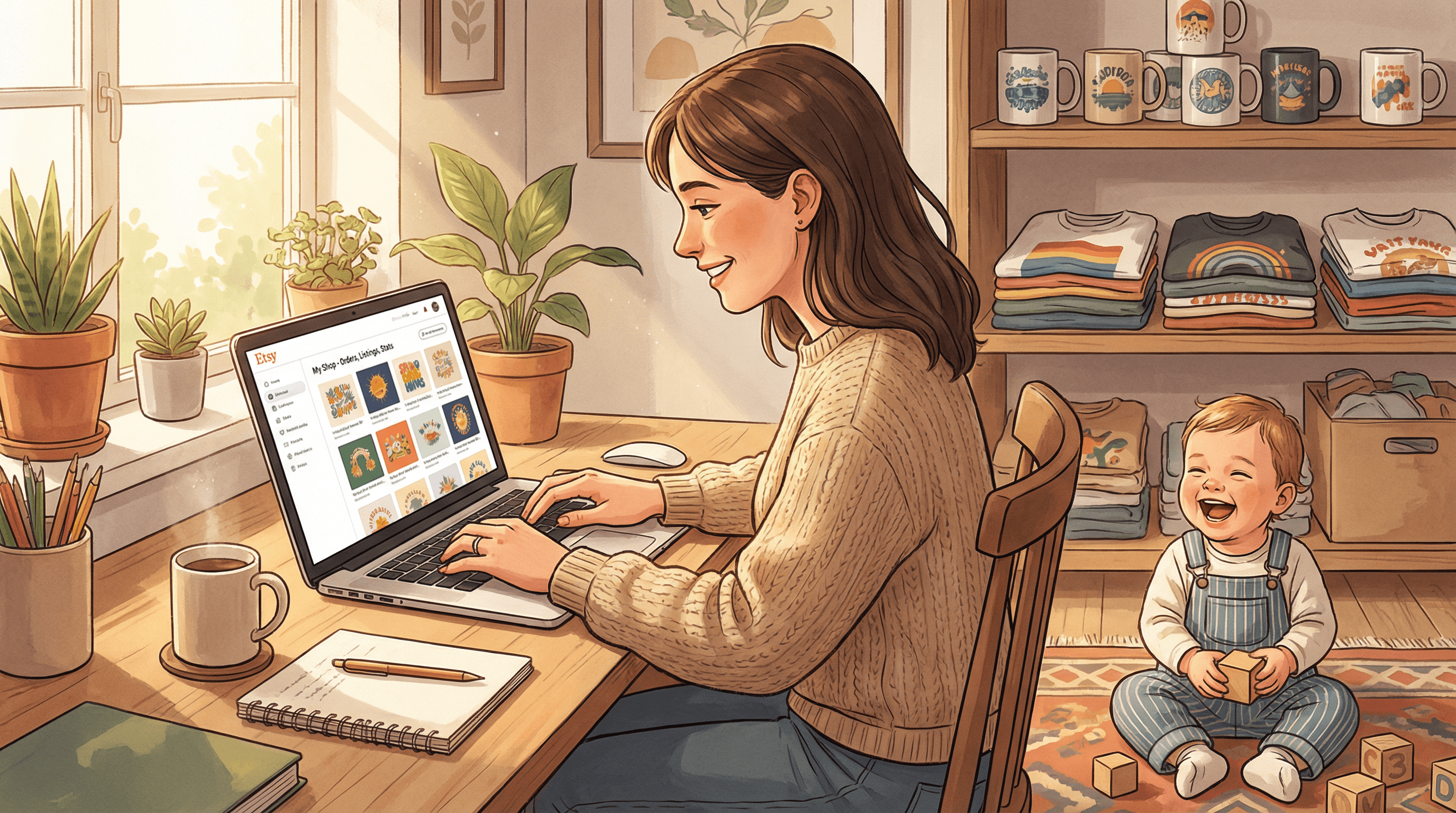 Finding a side hustle that fits around school drop-offs, nap times, and endless to-do lists feels impossible. Most options demand fixed hours you simply don't have. This guide reveals how smart moms are building profitable print-on-demand businesses on Etsy with intelligent automation that works while they focus on what matters most.