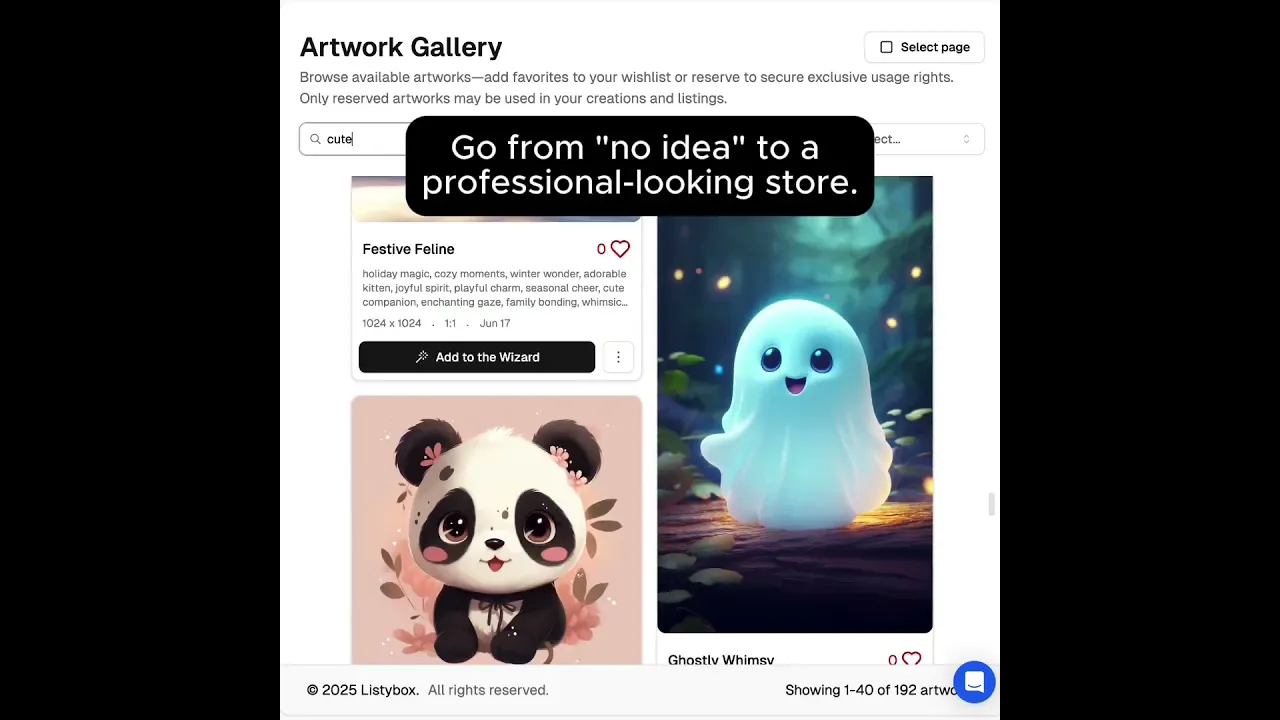"Instead of staring at a blank screen wondering what to design, imagine having a private team of professional artists who have already created your next bestseller for you, based on real market data. That's the Artwork Gallery.”