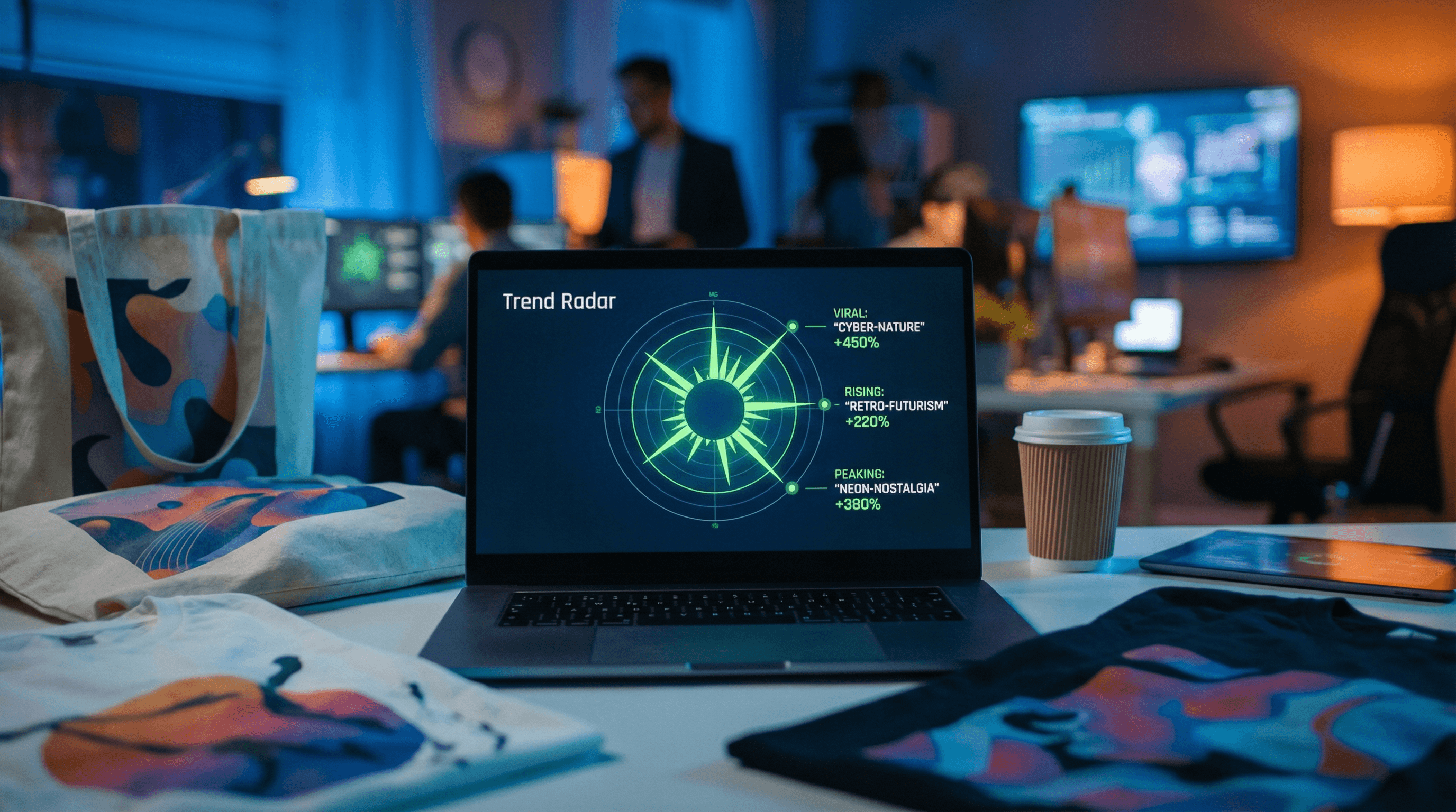 Bu özellik, size sadece "Şu konu popüler" demez; o konuyu satışa dönüştürecek stratejiyi de sunar. Bir trend tespit edildiğinde, sistemimiz anında o trende uygun, telif sorunu olmayan ve üretime hazır tasarımlar üretir. Bu, bir haberin manşetlere çıkmasından dakikalar sonra, o haberle ilgili bir tişörtü mağazanızda satışa sunabilmeniz demektir.