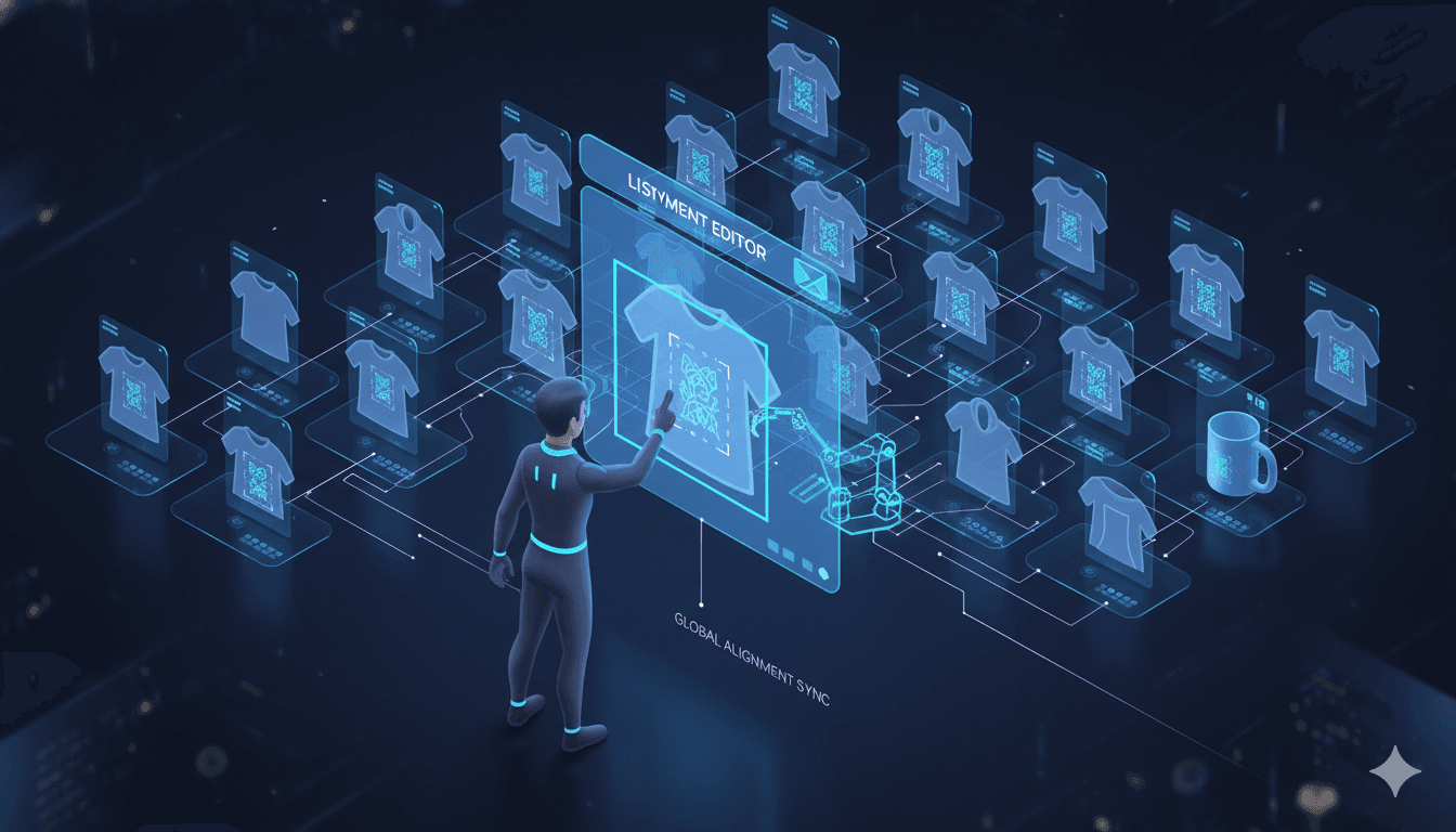 Printify gibi platformları kullanan her satıcı, her bir ürün için tasarım yerleşimini tek tek, manuel olarak ayarlamanın ne kadar zaman alıcı bir angarya olduğunu bilir.